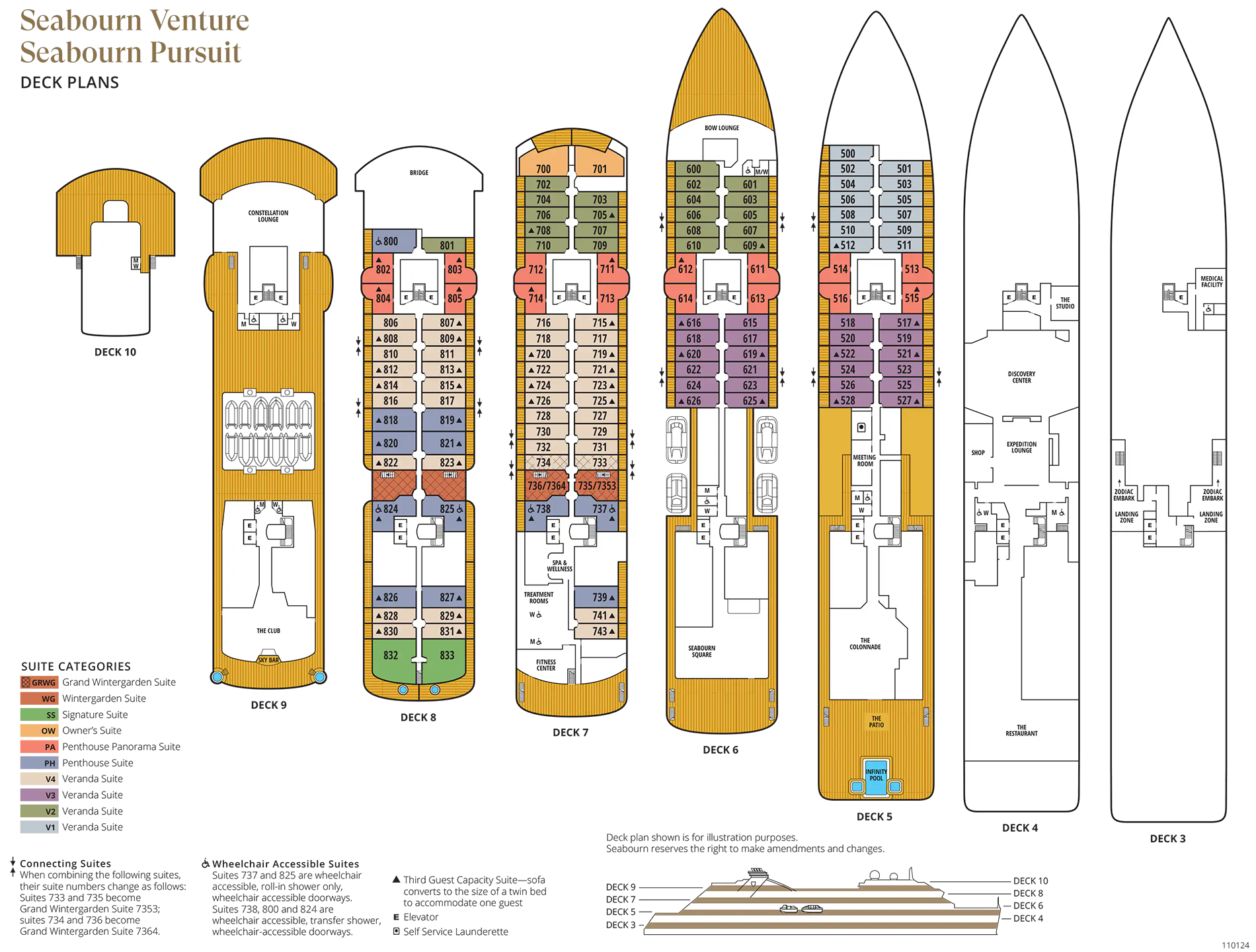 世邦冒险号(Seabourn Venture)是世邦邮轮(Seabourn)品牌历史上首艘专为极地探险打造的超豪华旗舰,也是其“超豪华探险(Ultra-Luxury Expedition)”新纪元的开篇之作。这艘于 2022 年正式交付的 PC6 极地冰级邮轮,由享誉全球的奢华酒店设计大师 Adam D. Tihany 亲自操刀,旨在向那些遥远而神秘的蛮荒之地致敬。它完美继承了世邦邮轮享誉业界的“私人游艇般”的私密氛围,同时注入了硬核的探险基因,被视为将高端定制旅游与极限探索边界完美融合的里程碑式作品。