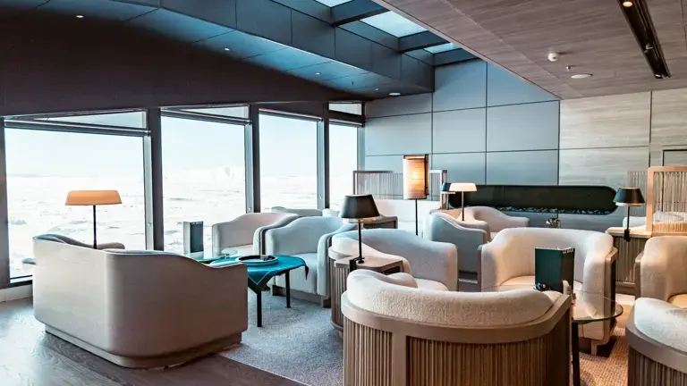 夏古号拥有31,283吨的稳健体量,却仅设有123间客舱,确保了极高的人均空间比与私密性。全船客房均为全阳台套房设计,由法国著名设计大师 Jean-Philippe Nuel 操刀,将现代简约美学与极地自然景观无缝衔接。其核心动力系统采用创新的LNG液化天然气混合动力,在保障强大破冰性能的同时,实现了低碳排放与静音航行,让宾客在静谧中近距离聆听冰川裂开的纯净音响,践行可持续的深度旅行理念。