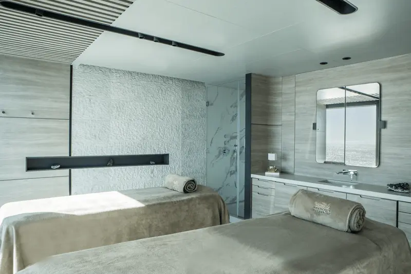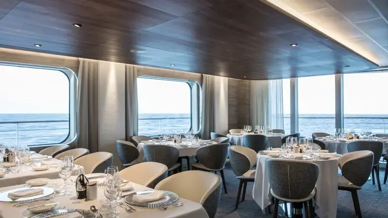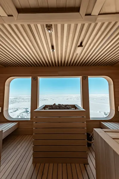 作为极地奢华旅行的标杆,夏古号在味觉体验上亦追求极致。它是全球唯一设有阿兰·杜卡斯(Alain Ducasse)法式餐厅的破冰船,将米其林级的饕餮盛宴带到了地球最遥远的角落。船上配备了独一无二的Blue Lagoon露天温水泳池、室内恒温泳池以及由 Biologique Recherche 提供的奢华SPA,让宾客在零下摄氏度的极地荒原中,亦能享受恒温如春的法式优雅生活。