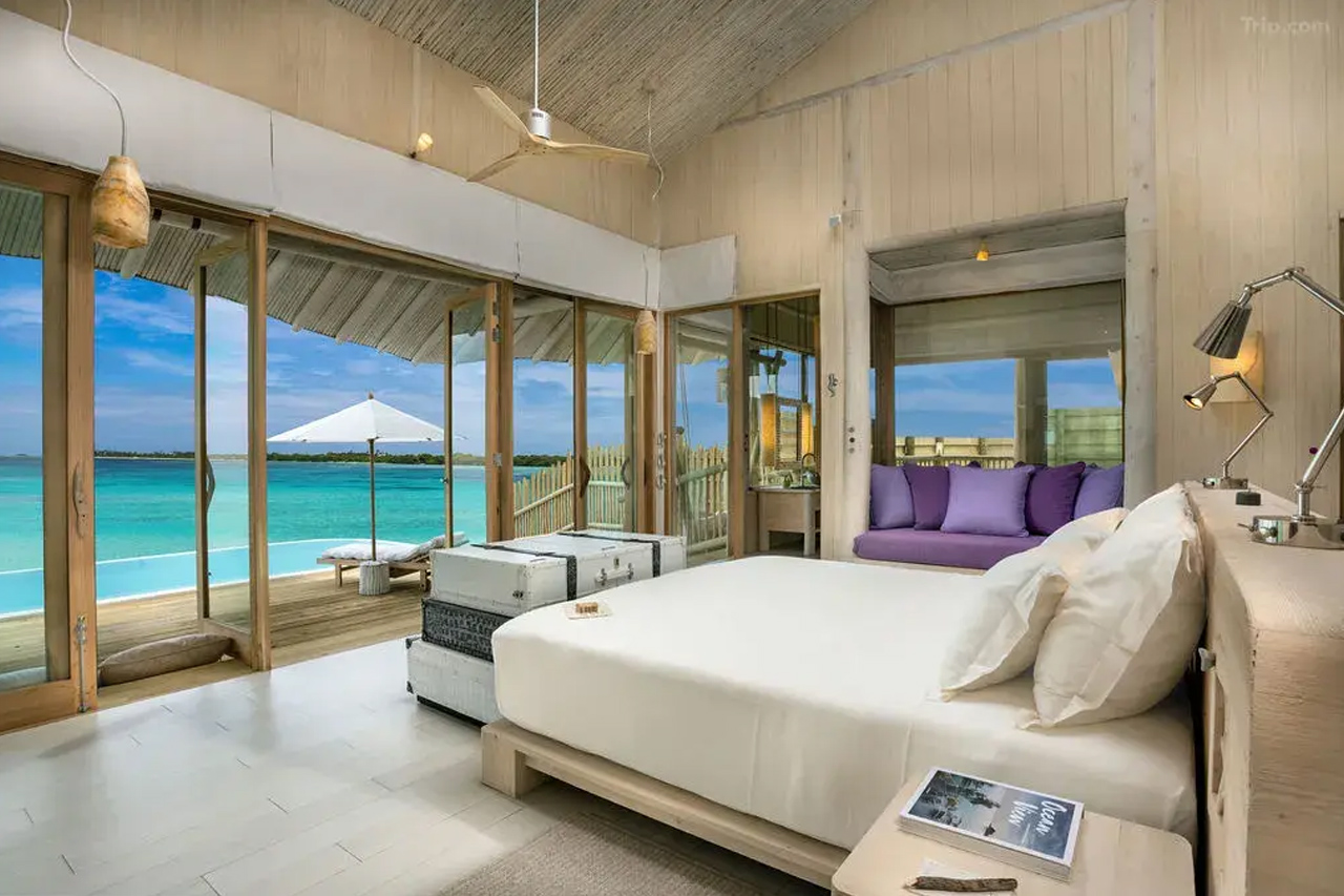 索尼娃贾尼强调人与自然的深度连接,摒弃过度装饰,采用可持续材料与低密度规划,使建筑仿佛自然生长于海面之上。酒店以高度自由的度假节奏见长,从星空天文台、私家沙洲用餐,到自然探索、水上运动与亲子活动,均可随心展开。无电视、无束缚的空间设计,引导宾客回归真实感受与陪伴时光。