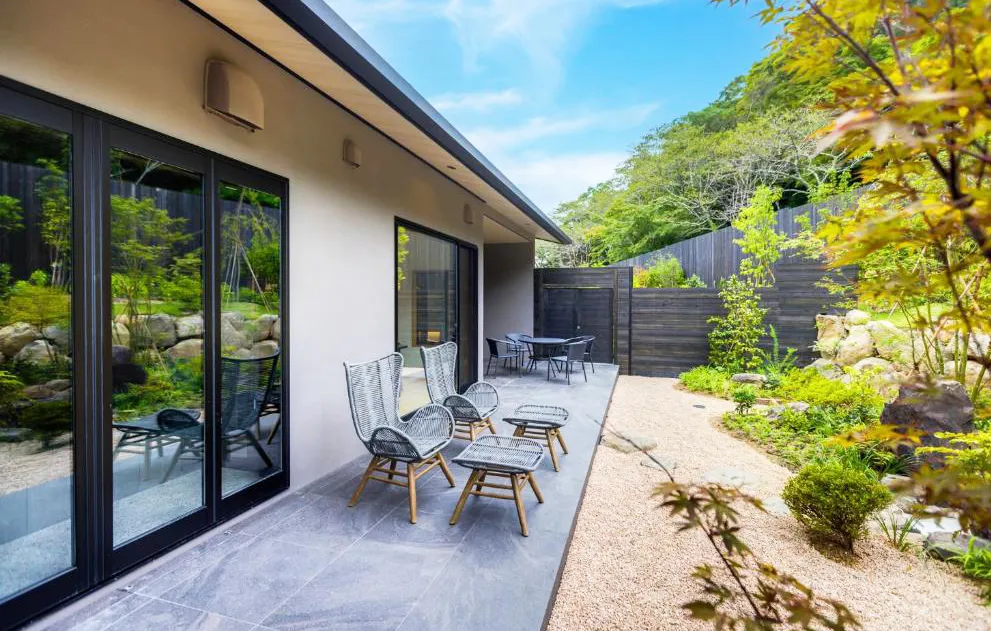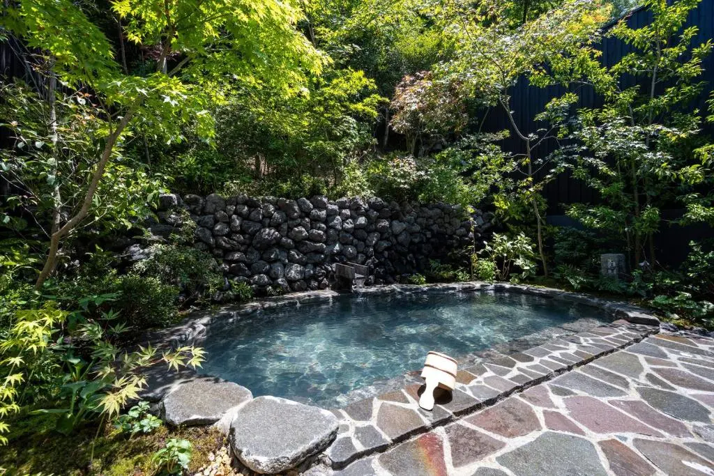馆内仅有11间客房,风格却趣巧多变,从传统和风设计到豪华露营风格,各有特色,并且都可以欣赏到窗外优美的庭园景致。馆内设置了三座贷切专用私汤,为具有美肌功效的源泉放流式温泉,气氛幽静私密,且巧妙借景庭园,在这里泡汤,仿佛身处风景画中一般优雅。