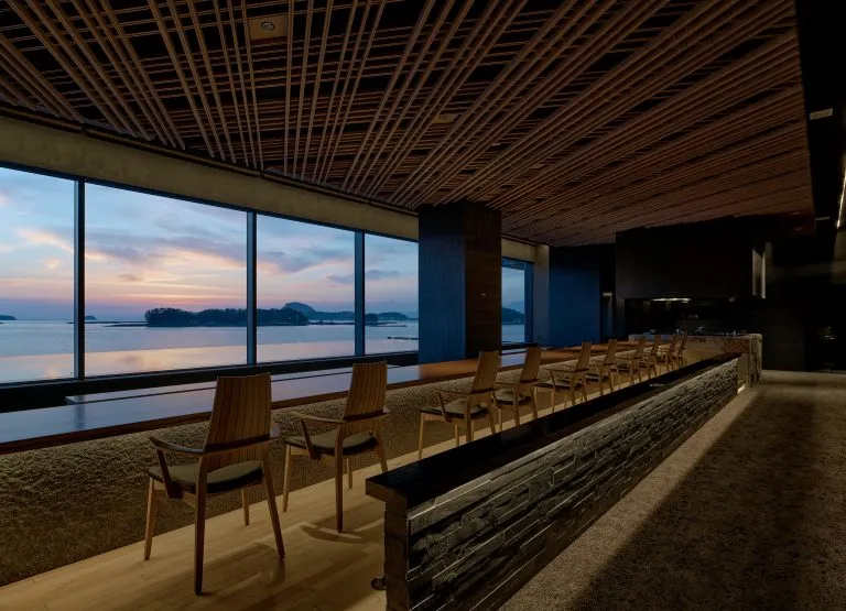 美食亦令人愉悦,“WABI”是有着十席吧台及七间个室的日本料理店,提供和食料理及寿司,玻璃窗外天草的海景近在咫尺,似同这里的美味一般秀色可餐。