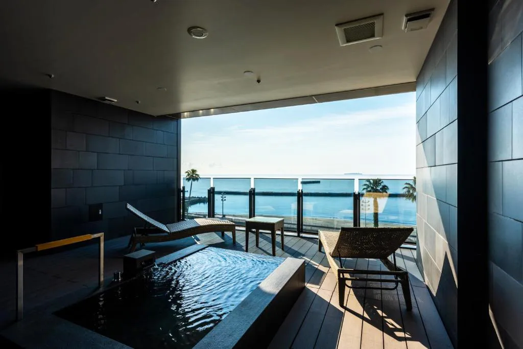 酒店共有87间客房,有多种房型可选。每间房间都设有海景露台及露天温泉,使用源自地下220米的自家源泉温泉水,可以随时享受赏海景泡汤的乐趣。最高层还坐落着全长12米的无边际泳池,放眼望去,便是海天一色的绝景。