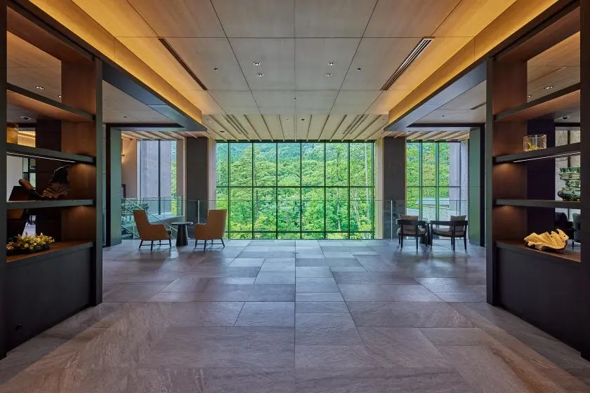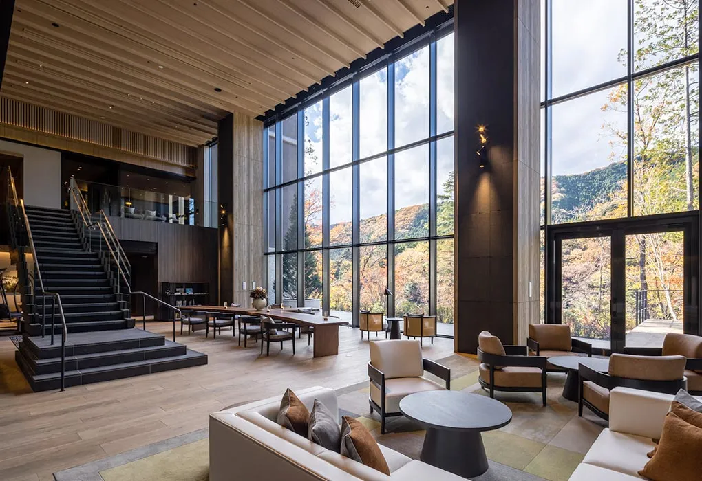 这座旅馆坐落于鬼怒川温泉乡,地处广袤开阔的溪谷之中,静谧雅致。旅馆所在的建筑多使用大片落地玻璃窗,不仅引入了充沛的光线,也确保丝毫不会浪费此般溪谷美景。