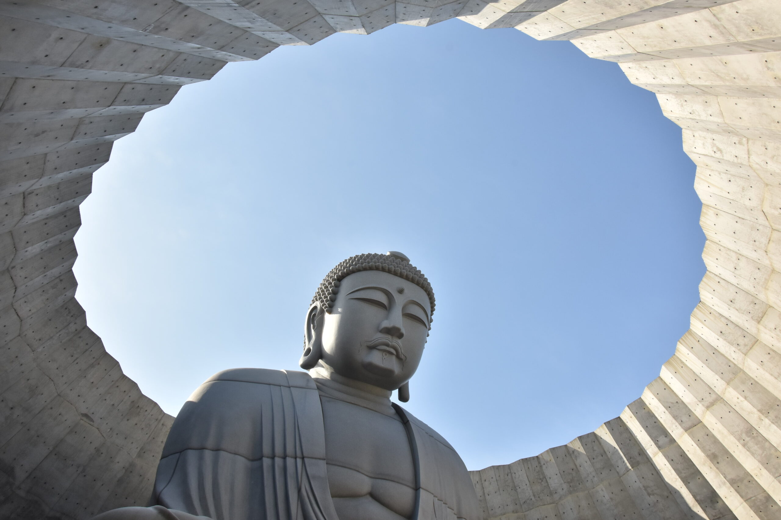 由安藤忠雄设计的头大佛殿,将佛像巧妙隐藏于人工山丘之中,仅露出佛首。穿越混凝土隧道后豁然开朗,天光自顶部洒落,形成极具仪式感的空间体验。这里并非传统意义的寺院参访,更像一次关于光、静与内心的冥想之旅。