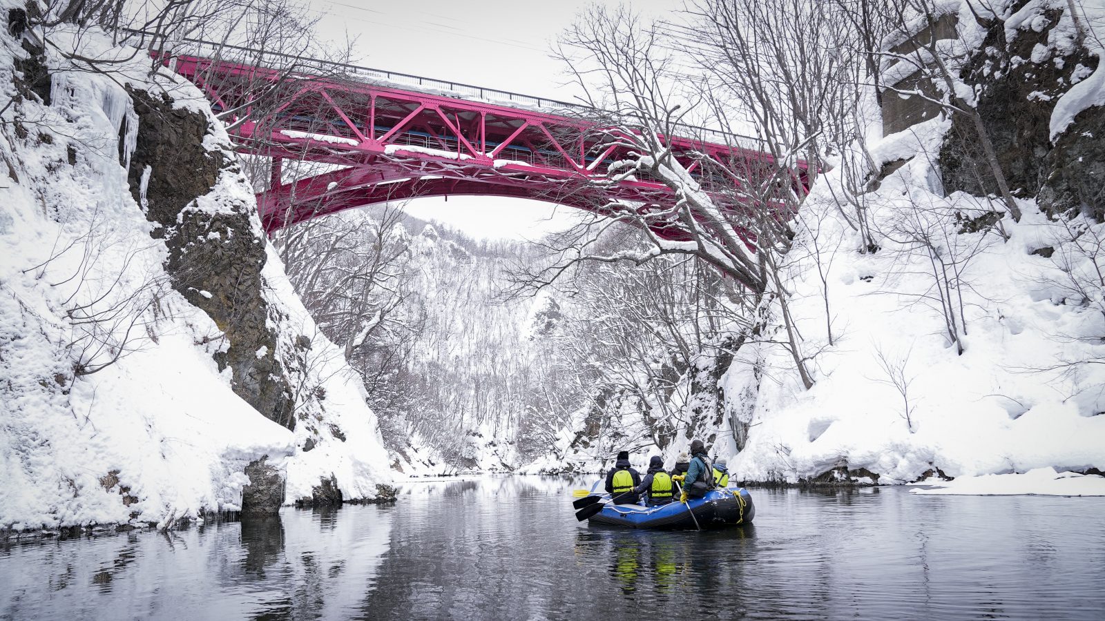 定山溪赏雪漂流是北海道冬季限定的户外体验项目。在专业向导带领下,游客乘坐皮划艇顺流而下,于冰雪覆盖的河道中缓慢前行。沿途可近距离欣赏雪谷、冰瀑与原始森林景观,静谧而纯净。该活动节奏平缓、体验安全,适合初次接触冬季户外项目的客人,是在温泉行程中加入自然探险元素的理想方式。