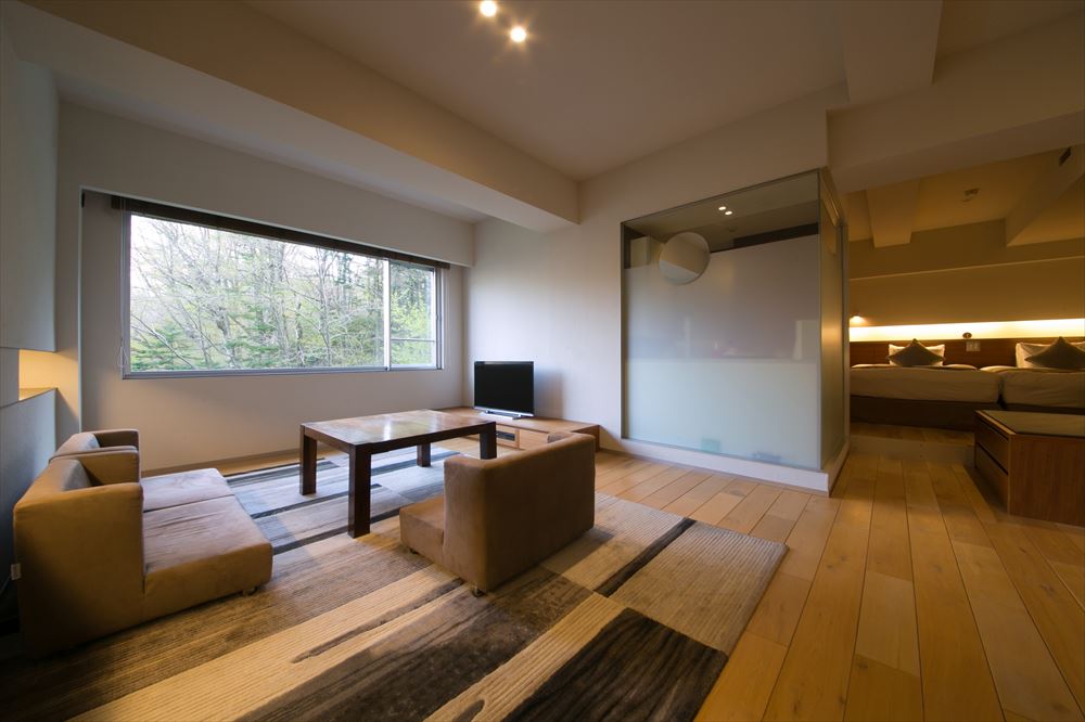 本行程入住的豪华套房面积约 100 平方米,配备私人温泉汤池,可在不受打扰的空间中独享登别著名的疗愈名汤。客房布局宽敞,起居与休息区域分明,适合家庭或追求舒适度的高端客人。