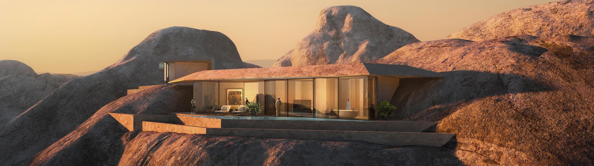 Desert Rock Resort 坐落于沙特红海沿岸的原始花岗岩山脉之中,是红海项目中最具标志性的野奢度假村之一。酒店由世界知名的 Oppenheim Architecture 设计,建筑直接嵌入岩石地貌,与沙漠环境高度融合,几乎“隐身”于自然之中。整体空间强调私密性与沉浸感,客房与别墅依山而建,视野直面峡谷、岩壁与星空。这里不仅是一家酒店,更是一处将建筑、自然与奢华体验融为一体的目的地,适合追求极致独特体验的高端旅行者。